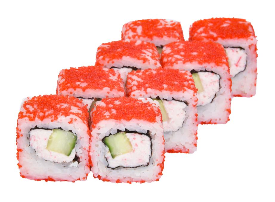 Состав: рис, нори, огурец, кремкраб, икра масаго.