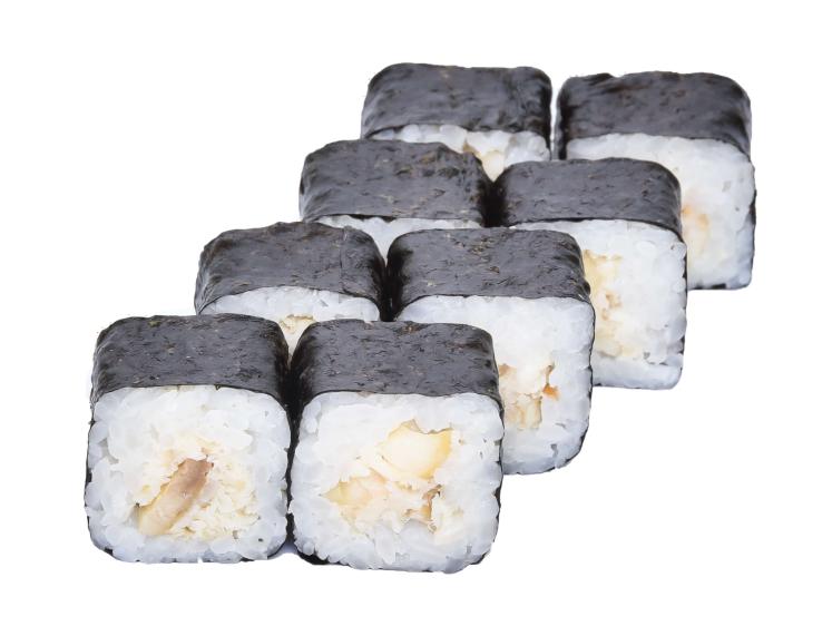 Состав: рис, нори, окунь жаренный.