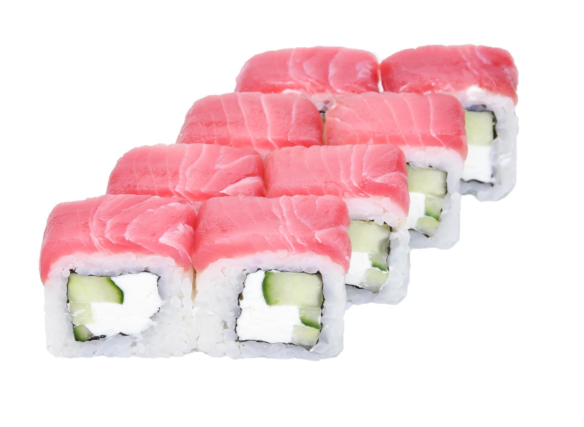 Состав: рис, нори, тунец, слив. сыр, огурец.