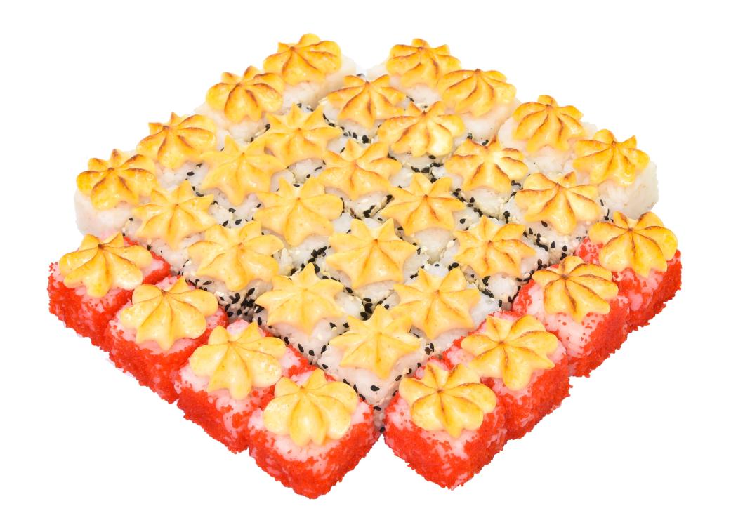 Дополняют состав: огурец, кунжут, сливочный сыр, яки соус для запечённых роллов.