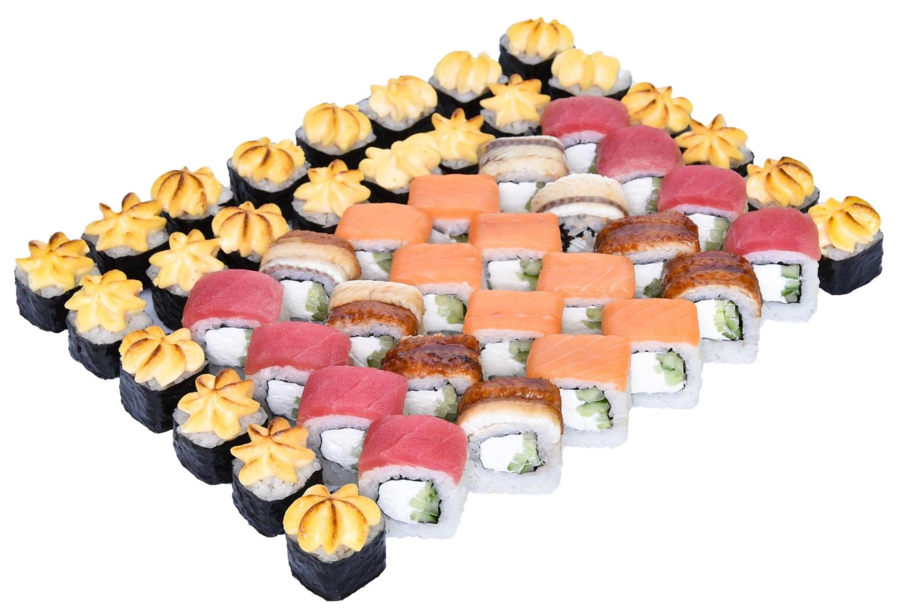 *Васаби, имбирь, соевый соус, унаги соус НЕ прилагаются, приобретаются отдельно!