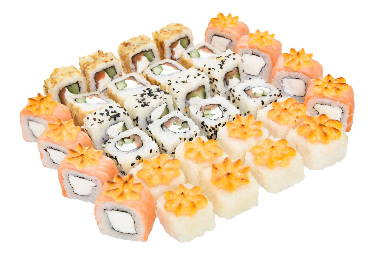 В состав сета входят роллы с: лососем, сливочным сыром.
