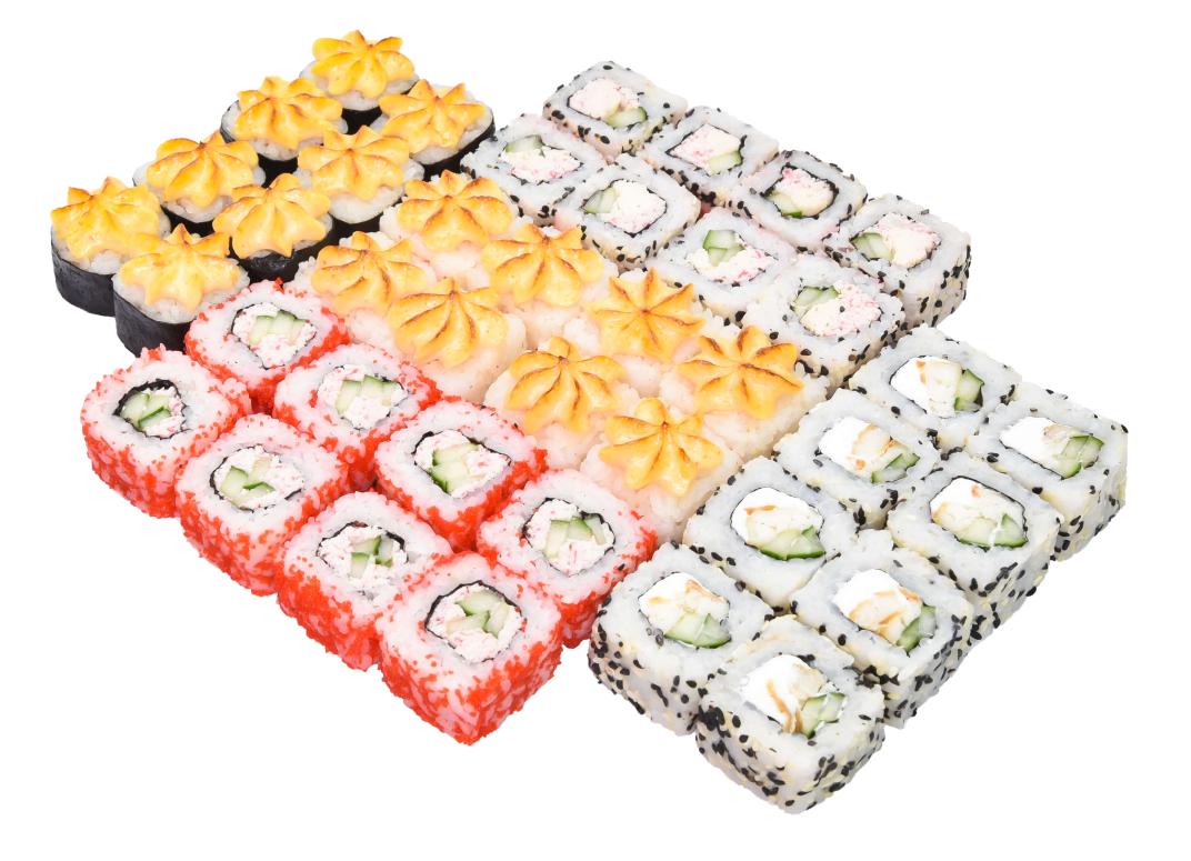 Яркое сочетание холодных и запеченных роллов, наполненных солнечными вкусами и ароматами.