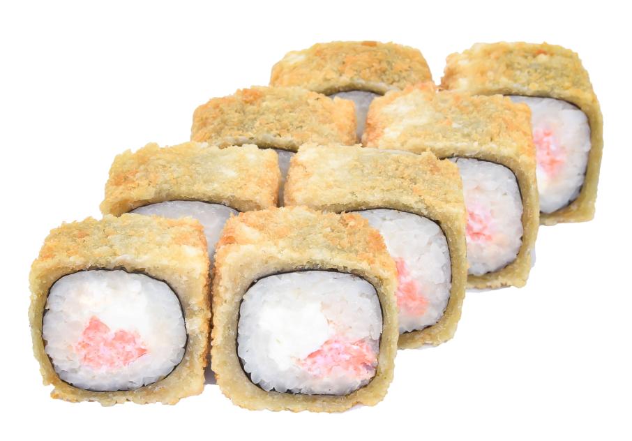 Состав: рис, нори, креветка, сливоч. сыр, кляр, сухари панировочные.
