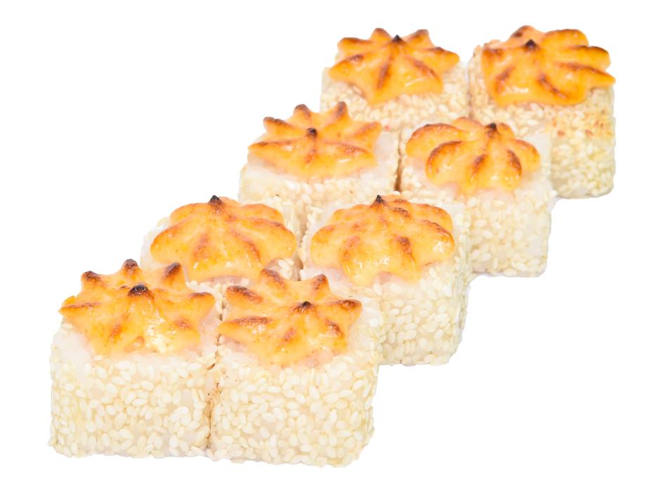 Состав: рис, нори, креветка, кремкраб, сыр, кунжут белый, яки соус.