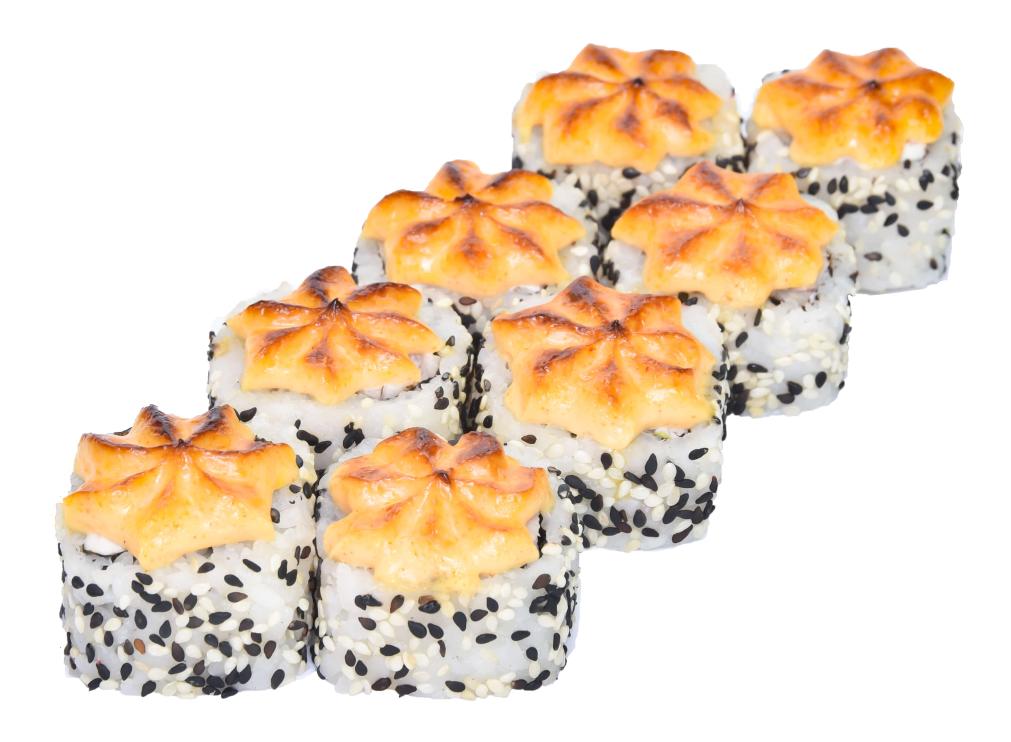 Состав: рис, нори, лосось, кремкраб, кунжут черный, кунжут белый, яки соус.